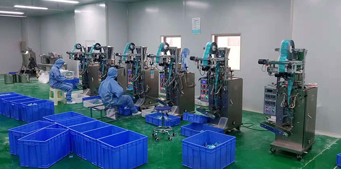 湖南可孚醫(yī)療科技發(fā)展有限公司生產(chǎn)車間-醫(yī)藥粉劑自動(dòng)包裝機(jī)-抑菌粉包裝機(jī)應(yīng)用現(xiàn)場(chǎng)